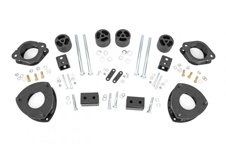 Each kit features a set of front and rear strut spacers, laser cut for a precise fit, and powder coated black to resist the elements. Rough Country’s 2in Leveling Kit features an easy installation process with no need for complicated strut disassembly. Includes a Lifetime Replacement Guarantee!