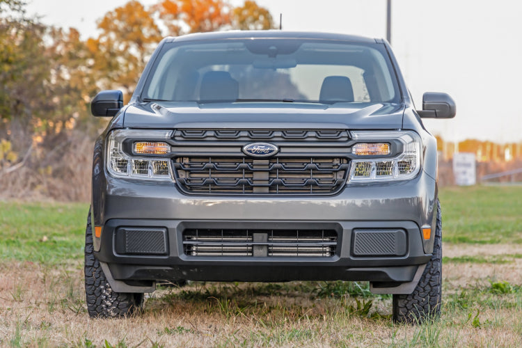 Enhanced ride quality and ground clearance. Rough Country's 2" Strut Lift Kit will raise your Ford Maverick to new heights and give it a more intimidating look. The Ford Maverick's nose-down appearance is caused by the fact that it is designed to sit lower in the front than the rear.
