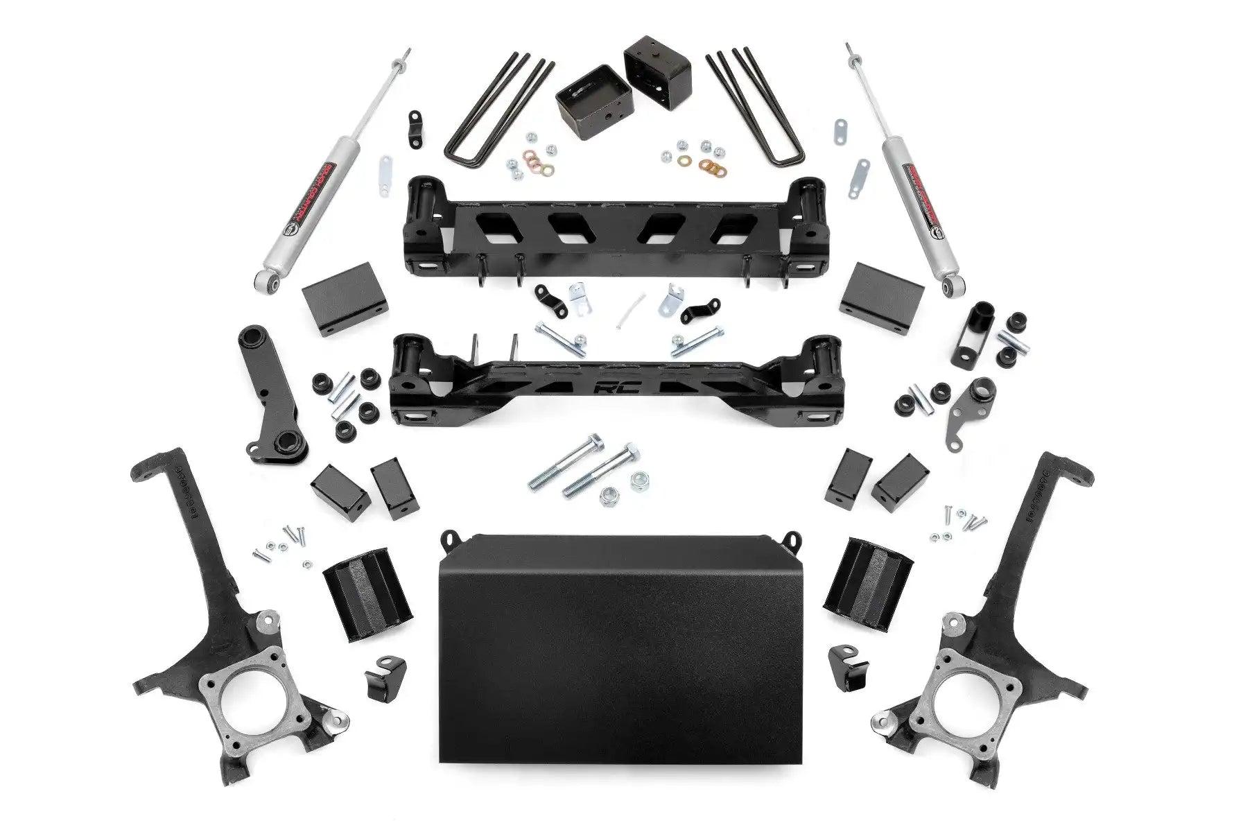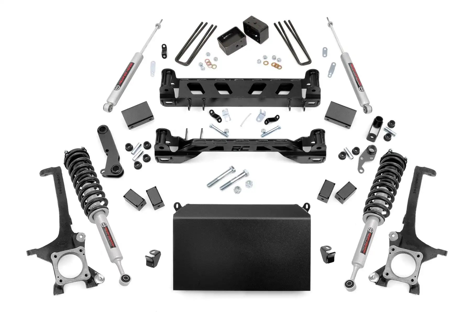 Rough Country's 4.5in Suspension Lift for 2007 and up Models will help you take your Toyota Tundra to the next level. This kit offers aggressive appearance, unmatched off-road capability, and adequate ride height to run up to 35-inch tires thanks to heavy-duty components and a high-clearance design.