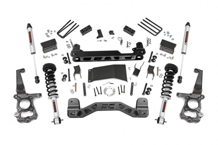 Rough Country's 4-inch Suspension Lift will give your Ford F-150 an aggressive new look and unrivaled off-road performance. Everything need to get your Ford off the highway and into the fields is included in this all-inclusive kit.