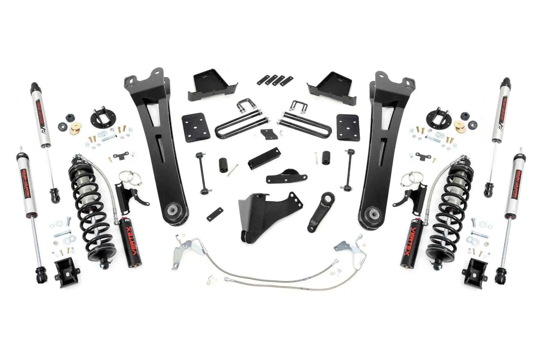 Superior Ride Quality. Take your second-generation Ford Super Duty to new heights with Rough Country's 6-inch Radius Arm Coilover Conversion Suspension Lift! This all-inclusive kit comes with everything you need for a total transformation of your truck. Run up to 37in tires while preserving the smooth, factory ride quality with this impressive upgrade.