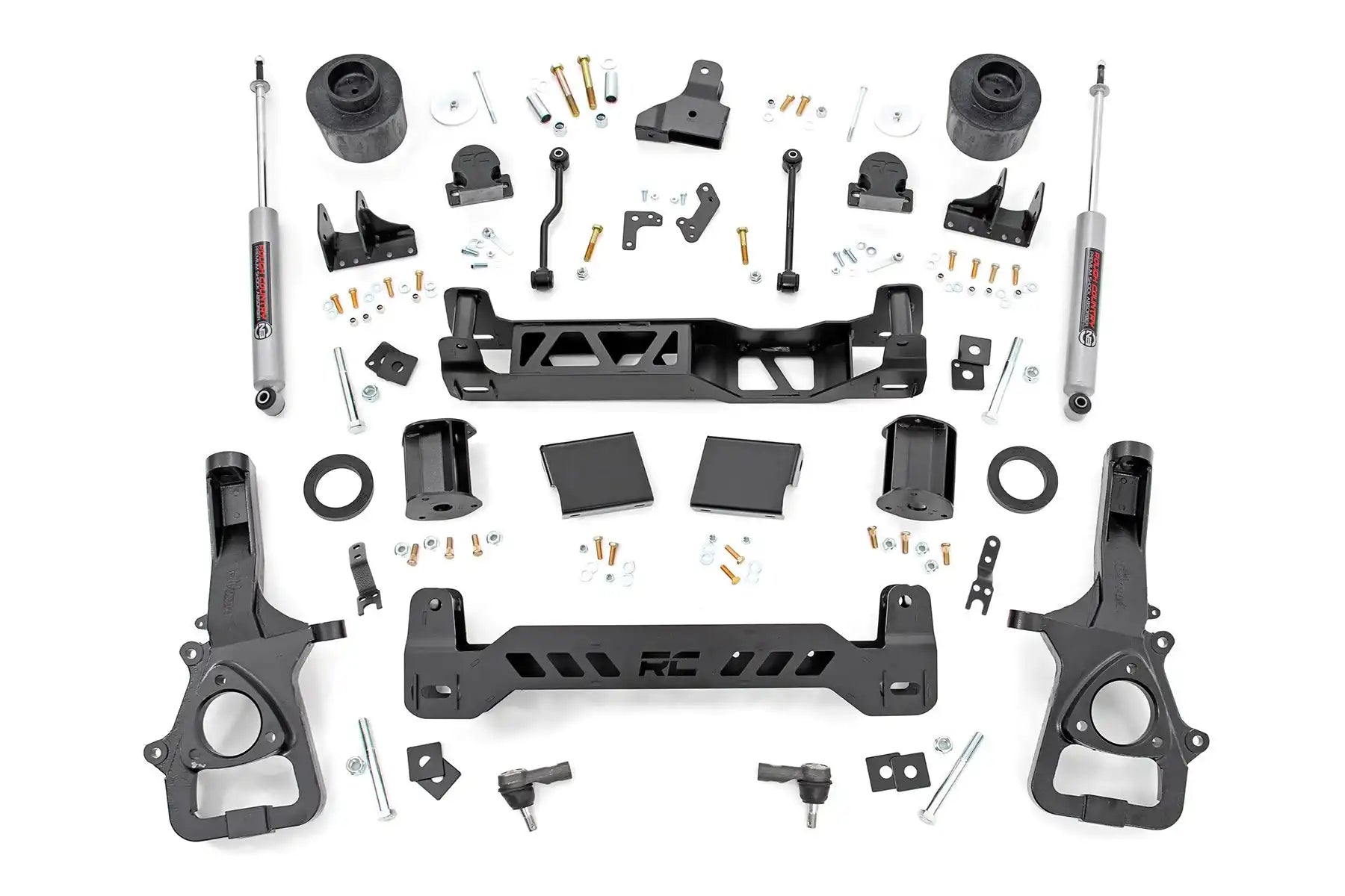 Durable Design and Function! Rough Country’s 6in Suspension Lift gives you plenty of increased ground clearance for off-road action and enough additional ride height to run up to 35in tires for a head-turning look that’s sure to command attention. Each kit features a set of high-quality front and rear cross members with a laser-cut RC logo, giving the truck a fierce, but streamlined look after lifting. For true trailblazers, this kit also ships with a set of rear N3 Nitrogen-charged shock absorbers - valved specifically for a blend of on and off-road performance. This kit also includes an upgraded outer tie-rod that’s engineered to optimize turning and minimize bump steer while allowing you to fit a wider variety of wheels.