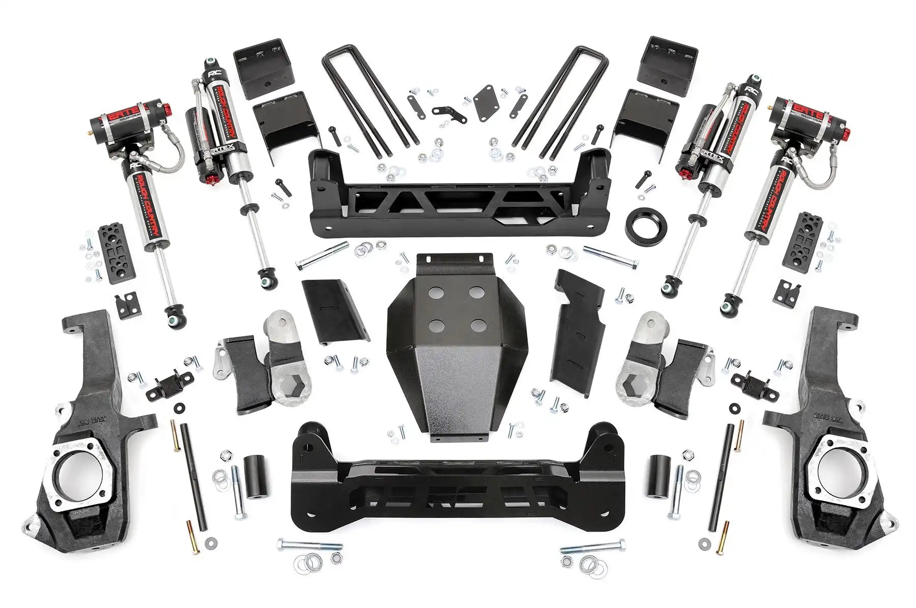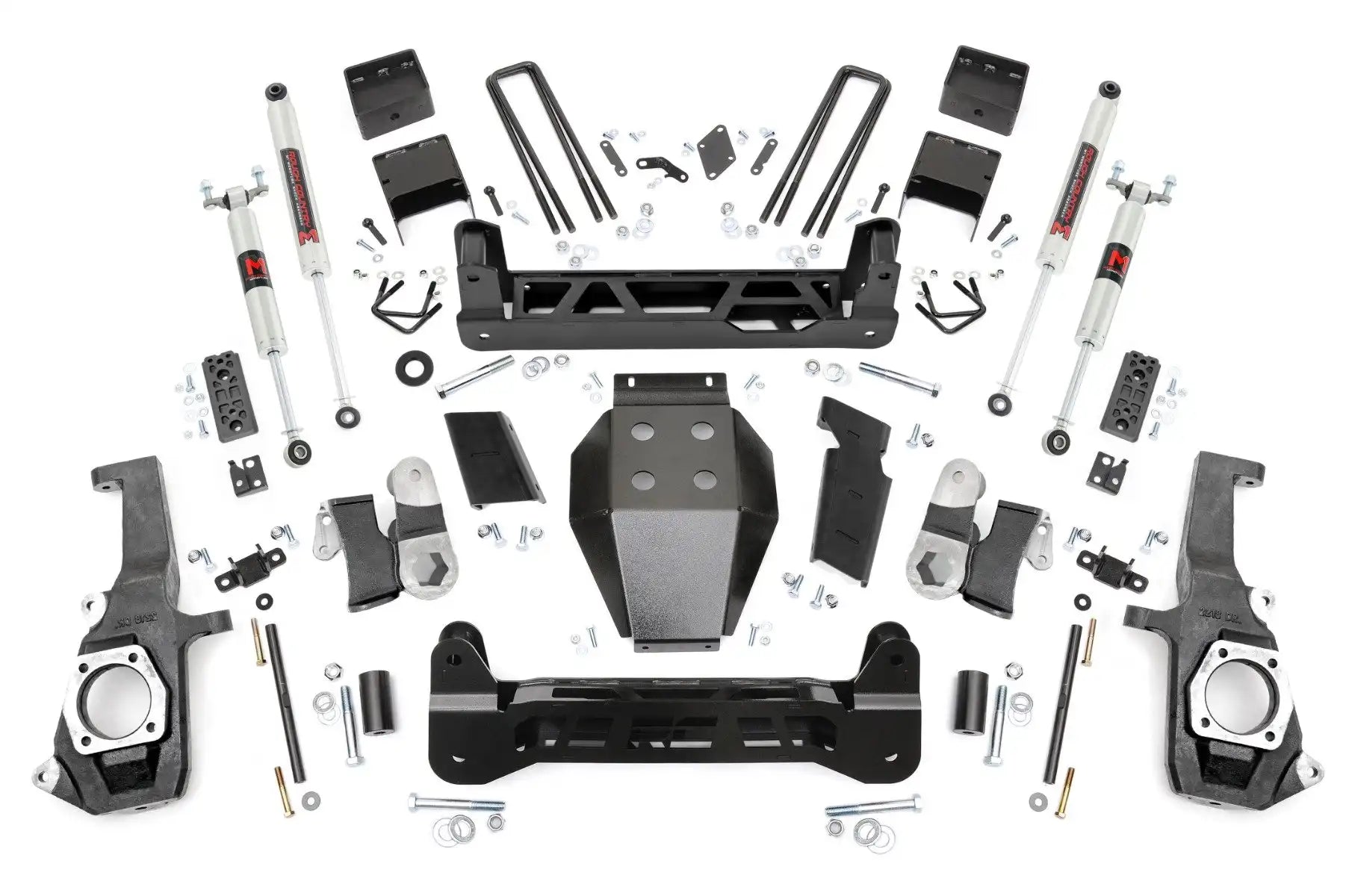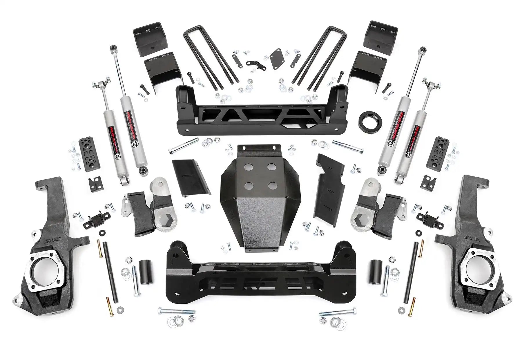 Right off the lot The GM 2500 HD has an impressive stance and a killer look, inspiring Rough Country to build a kit that would add crucial enhancements while taking nothing away from this sharp looking, new model truck. The 7.5" N3 Suspension Lift for GM 2500 HD features a Non-Torsion Drop Design for better clearance and handling while maintaining proper angles in a "clean and tucked away" fashion. This kit also features Heavy Duty components worthy of the HD badge; With 1/4" thick steel crossmembers, 1/2" thick NTD Brackets, and a durable, thick Skid Plate - all laser-cut and powder coated in our "Hammer Black" color to match the factory components. Installation requires no drilling or modifying the differential, meaning no "invasive" mods to your new toy.