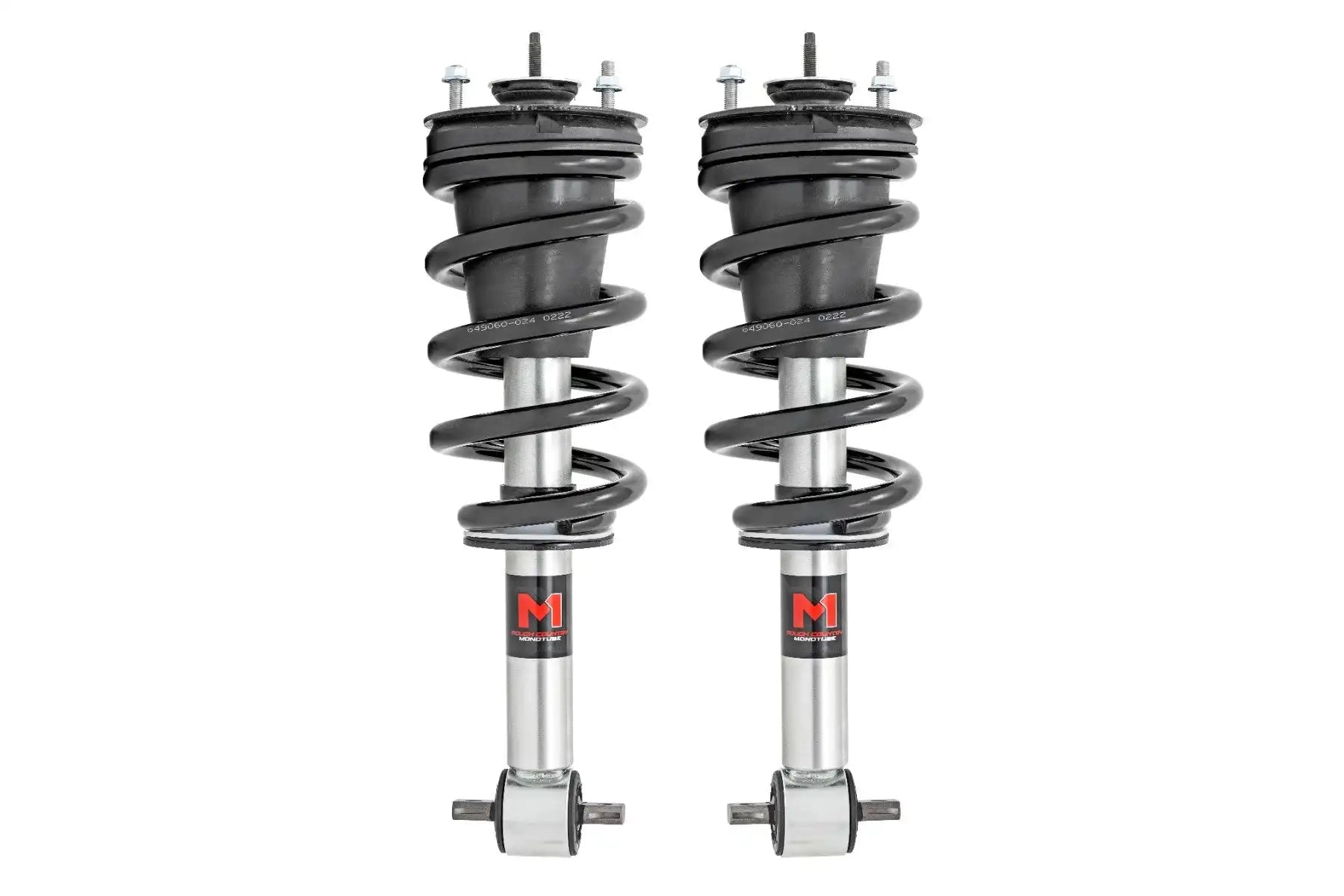 Improved Handling, balance, and stance.Rough Country's M1 Strut Leveling Kits are the best option if you want to increase your car's on- and off-road performance. By stabilizing your vehicle's motions, our M1 Leveling Struts improve control when you turn, halt, accelerate, or travel over irregular road surfaces. These M1 struts, which have an adjustable ride height, prevent your suspension from expanding too much, giving you a smoother ride. Our M1 monotube struts, designed for tough off-road performance, with a 46mm progressive piston for a more stable ride while maintaining the necessary smooth ride quality.