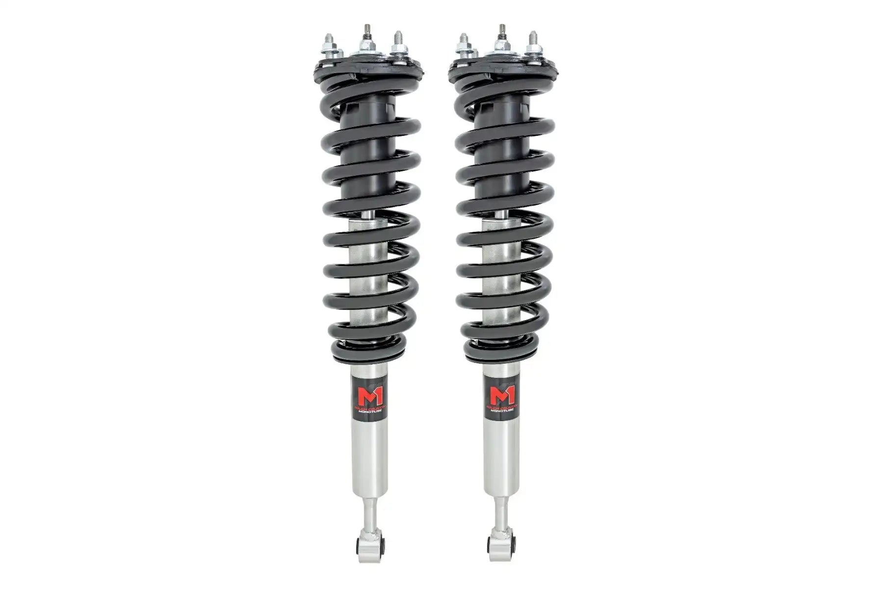If you want to improve your vehicle's on-road performance and off-road capabilities, Rough Country's M1 Strut Leveling Kits are the way to go. Our M1 Leveling Struts help stabilize your vehicle's movements, enhancing control when you turn, brake, accelerate or ride over uneven road surfaces. As an adjustable ride height strut, these M1’s keep your suspension from overextending, providing a more consistent ride. Made for rugged off-road performance, our M1 struts have a 46mm digressive piston for a more stable ride, preserving the smooth ride quality you need.