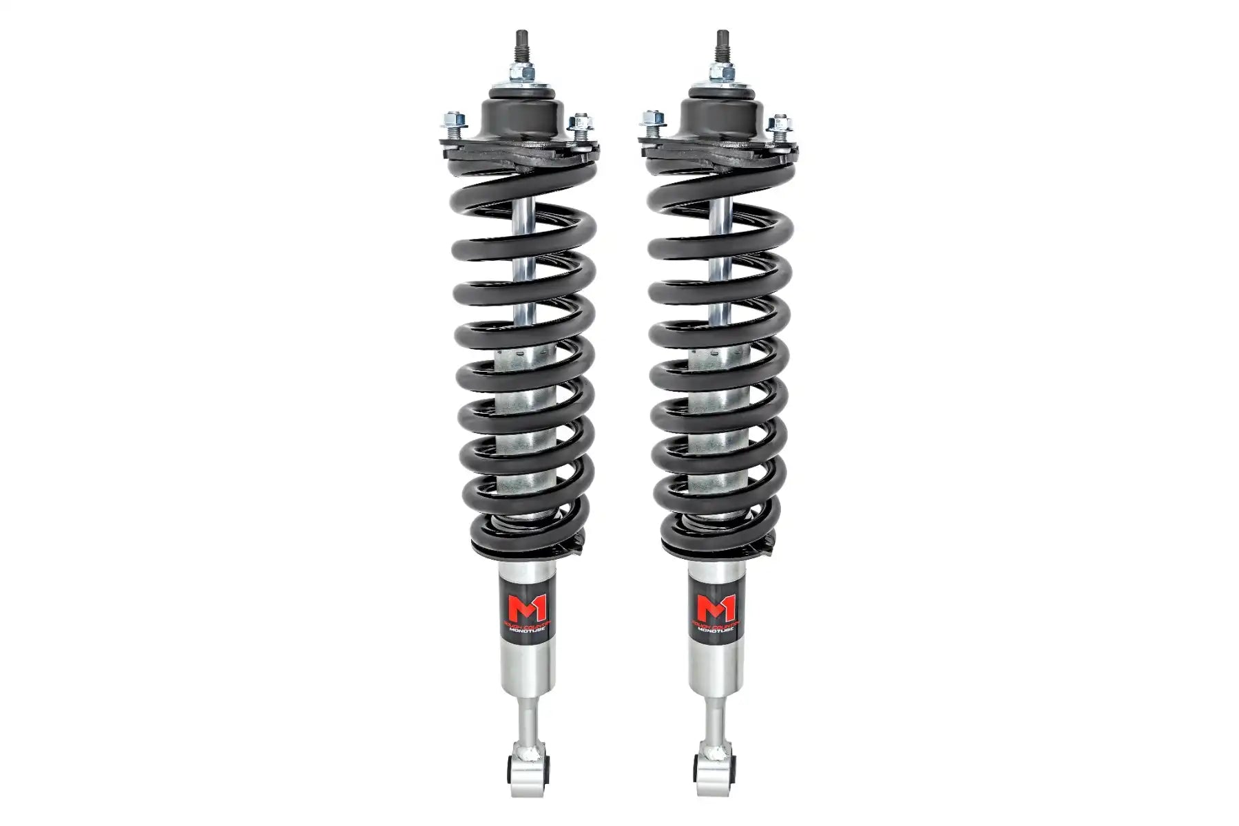 Enhanced Handling, Balance, and Stance. In order to enhance your car's off-road and on-road performance, Rough Country's M1 Loaded Strut Kits are the best option. Your car will move more steadily and controllably as you turn, brake, accelerate, or drive over rough terrain thanks to our M1 Loaded Struts. These M1 adjustable ride height struts prevent overstretching of your suspension, resulting in a more comfortable ride. Our M1 monotube struts, designed for tough off-road performance, feature a 46mm digressive piston for increased stability and the necessary smooth ride quality.