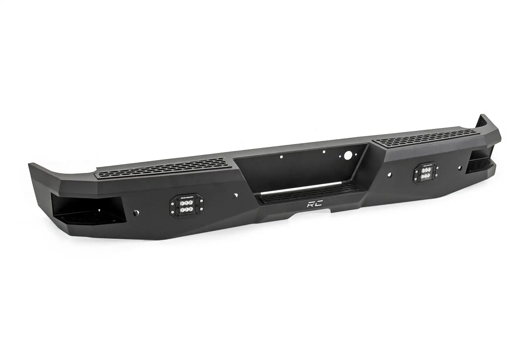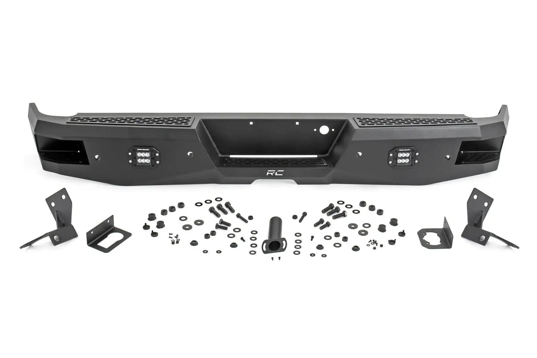 Give the rear of your GM 1500an aggressive, new appearance with Rough Country’s Rear LED Bumper. This easy-to-install upgrade gives your truck an improved look and better functionality. Each bumper features two Rough Country Black-Series 2in LED Flush Mount Cubes for rear illumination, and two integrated steps for easy access to the bed. Rough Country’s Rear LED Bumper is made of a durable, all-steel construction that’s ready to handle whatever you dish out. Each bumper also includes sensor relocators to allow you to retain the vehicle’s anti-collision system. Unlike some aftermarket bumpers for this model, Rough Country’s LED Rear Bumper allows you to retain the factory receiver hitch for towing. Complete the look with Rough Country’s Front LED Bumper for a total transformation of your truck. Includes a 3-year Warranty!