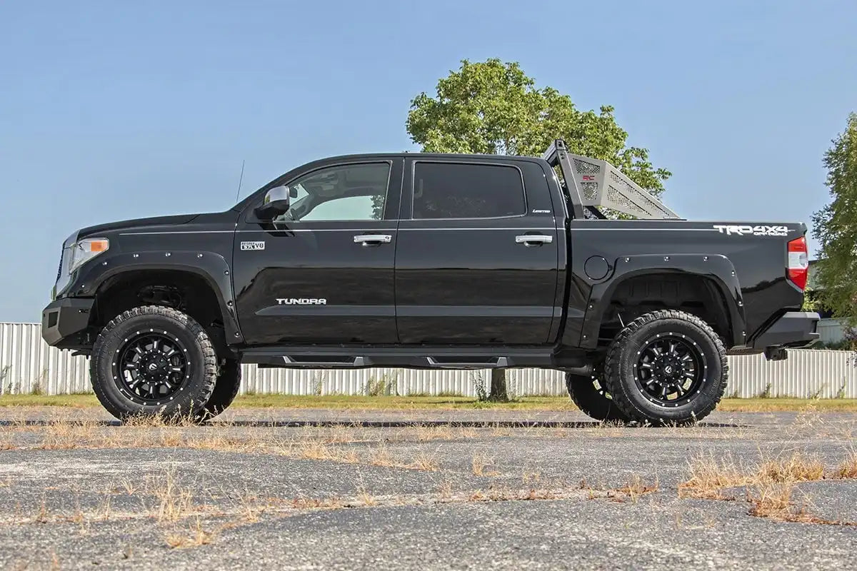 Give the rear of your Toyota Tundra an aggressive, new appearance with Rough Country’s Rear LED Bumper. This easy-to-install upgrade gives your truck an improved look and better functionality. Each bumper features two Rough Country Black-Series 2in LED Flush Mount Cubes for rear illumination, and two integrated steps for easy access to the bed. Rough Country’s Rear LED Bumper is made of a durable, all-steel construction that’s ready to handle whatever you dish out. Each bumper also includes sensor relocators to allow you to retain the vehicle’s anti-collision system. Unlike some aftermarket bumpers for this model, Rough Country’s LED Rear Bumper allows you to retain the factory receiver hitch for towing. Complete the look with Rough Country’s Front LED Bumper for a total transformation of your truck. Includes a 3-year Warranty!