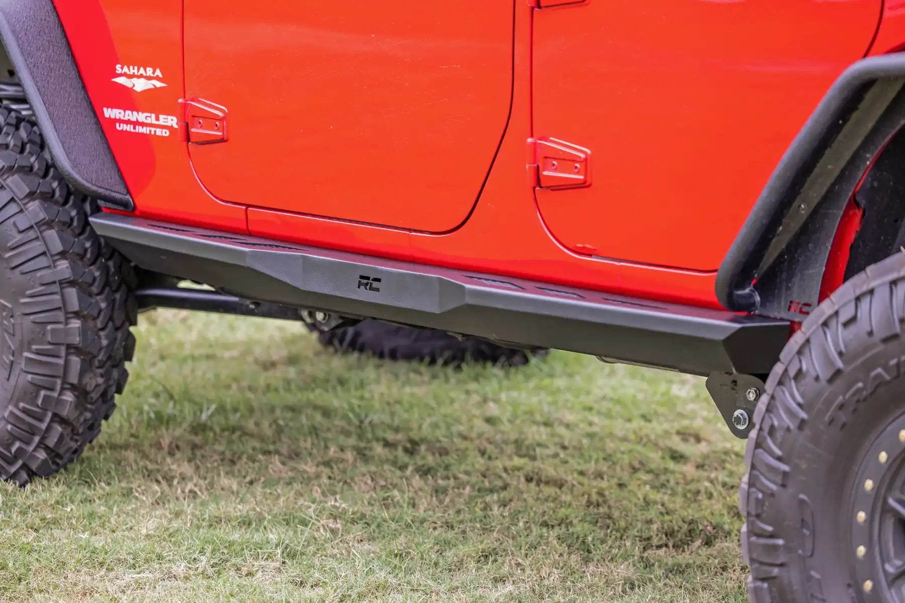 Ultimate Protection. Introducing JK Unlimited Rock Sliders, the ideal option to shield your Jeep from rocky terrain and other road hazards. These strong men can handle whatever you may run into on or off the trail. Additionally, they offer an aggressive off-road design to maintain your truck's outstanding looks at all times. So JK Unlimited Rock Sliders are the ideal option if you want to combine killer flair with exceptional protection.