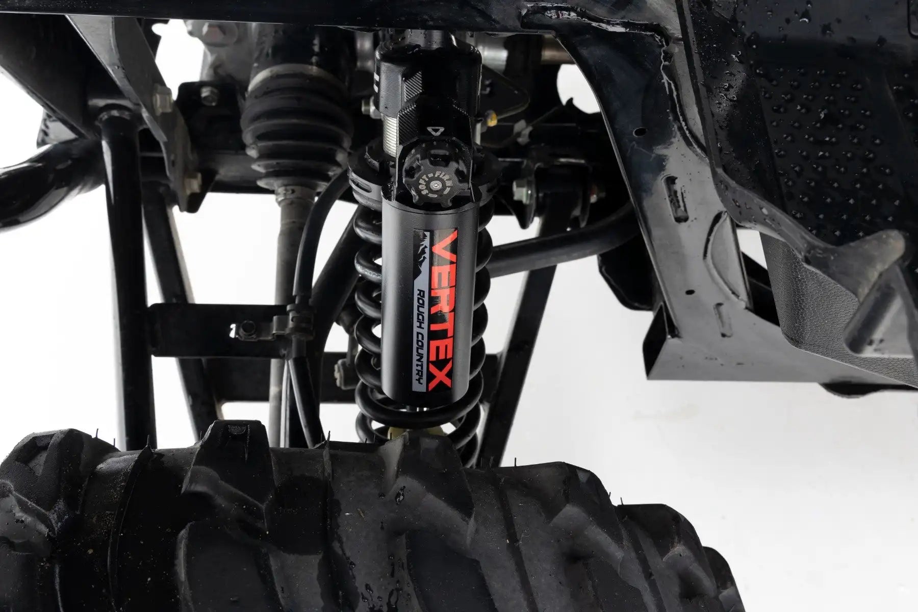 Outstanding Ride Quality. The Honda Pioneer Vertex Coilover Shocks offer the highest level of off-road performance. These shocks include 16 stages of damping adjustment, making it simple to dial in the ideal level of stability and support. It is simple to obtain the ideal amount of clearance for your particular demands thanks to the adjustable coilover design, which offers a lift of 0 to 2 inches. Additionally, the rubber bump stop offers better stability while the 3-stage seal system keeps out dirt and debris. The Vertex Coilover Shocks for Honda Pioneer will therefore provide you with the performance you require, whether you're hitting the trails or forging your own route.